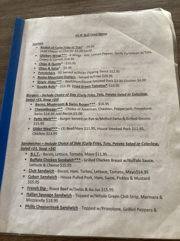 Sit N Bull Saloon Menu (Update 2025)